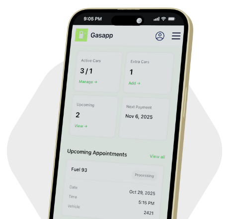 GasApp is a premium fuel delivery service that brings fuel directly to your location, eliminating the need for gas station stops. After subscribing, you can book a time slot, select your fuel type and amount, make an upfront payment, and our team will handle the rest.